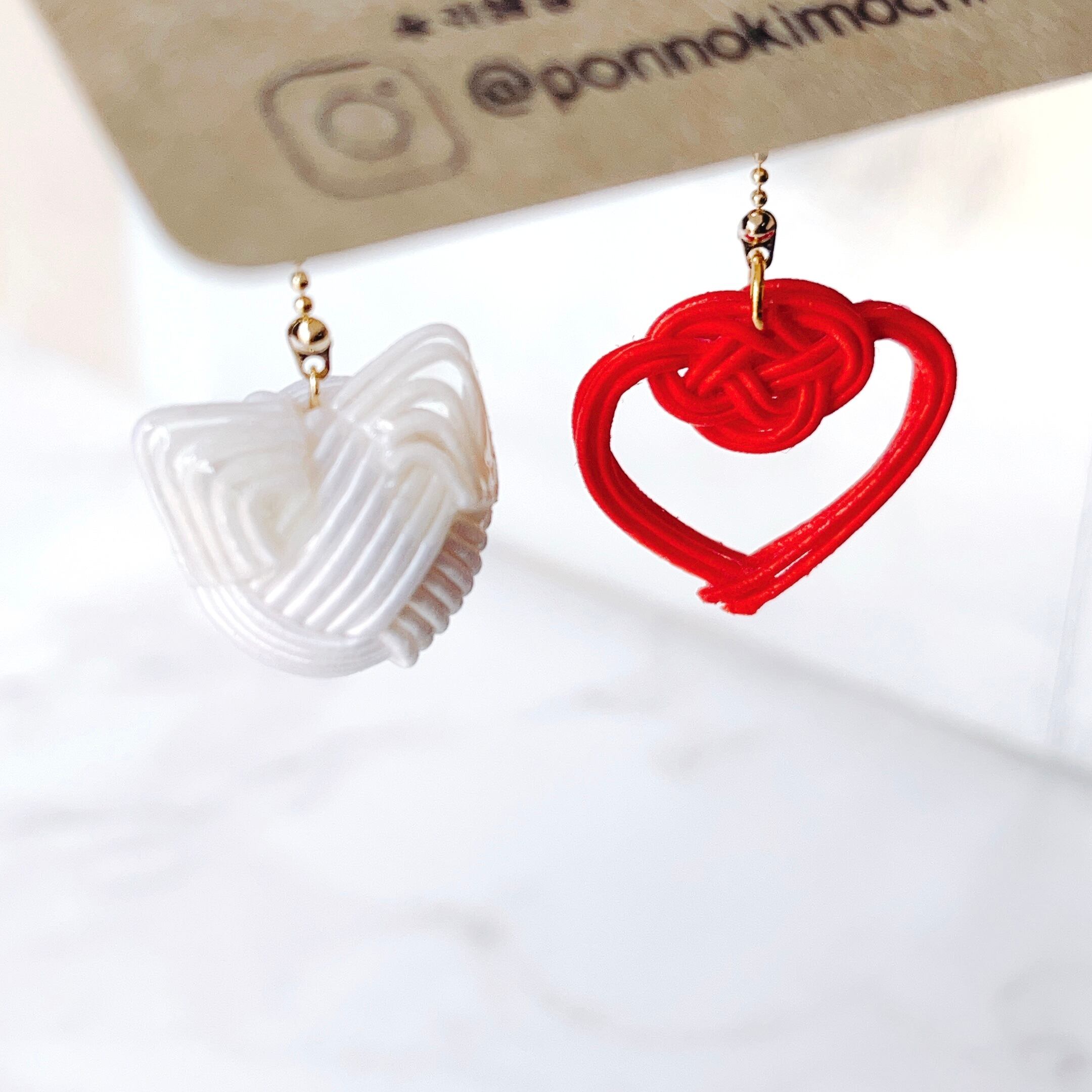 良いことあるにゃ!水引で作った白猫のピアス/イヤリングです。